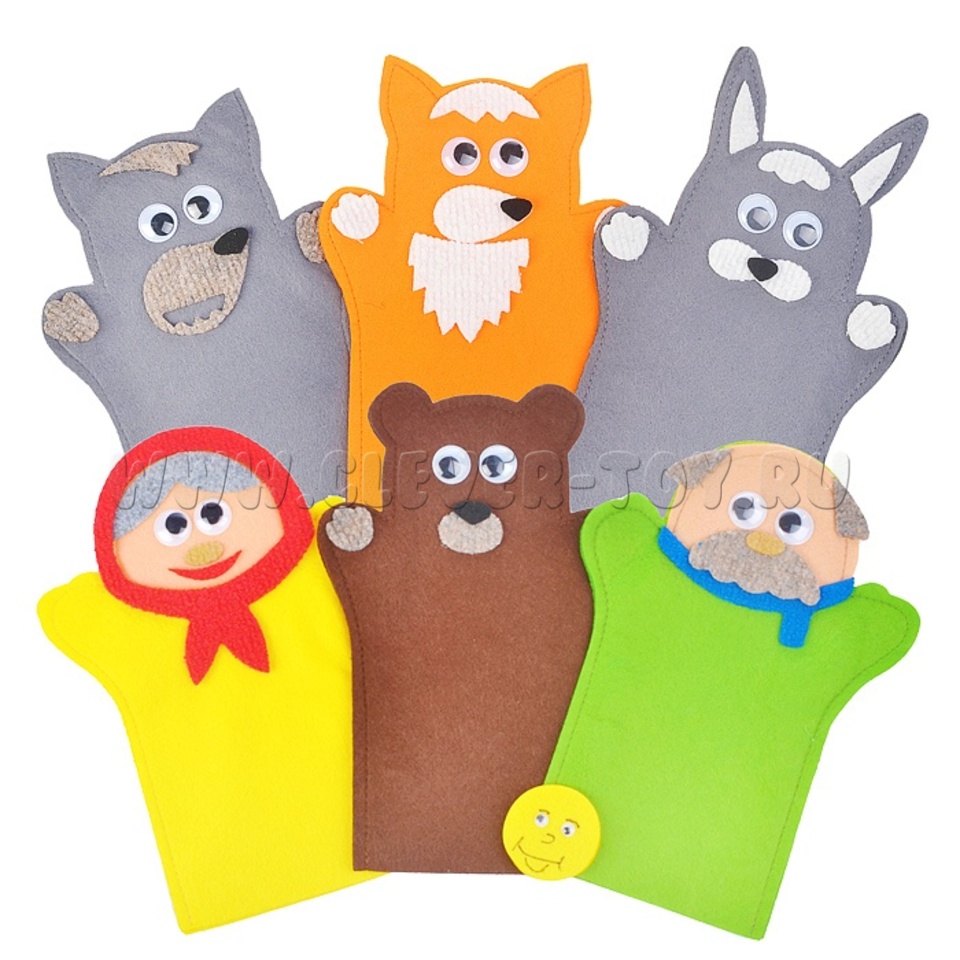 Героев можно использовать при чтении книжки, превращая сказку в анимированное представление. Пусть ребёнок сам покажет, как прыгает зайчик, как крадётся лисичка, как говорит медведь, как катится колобок.