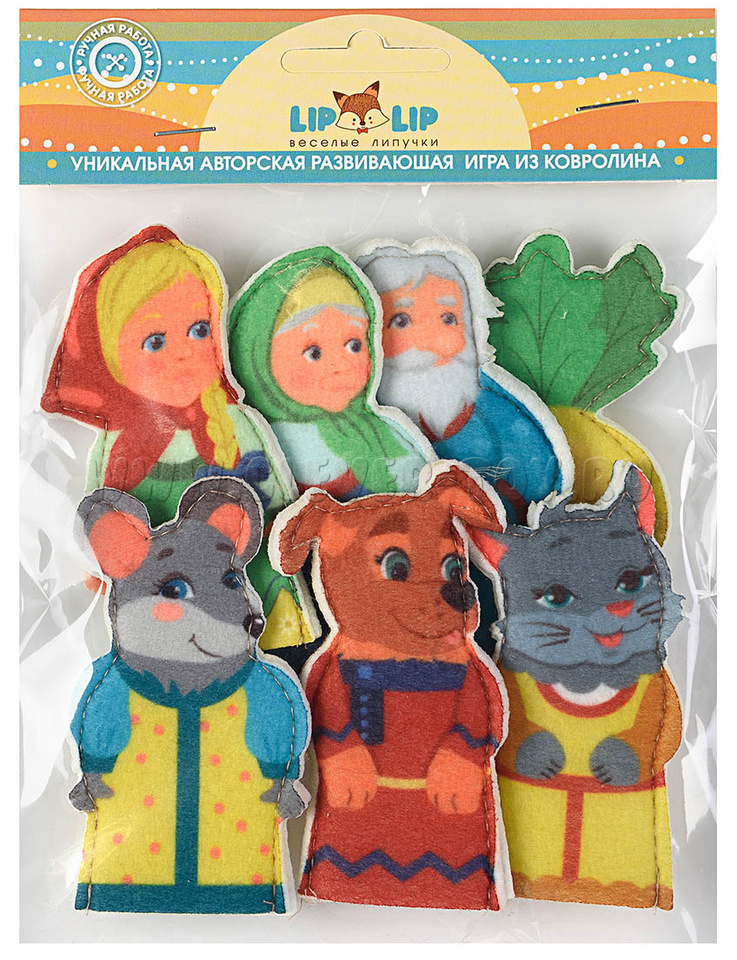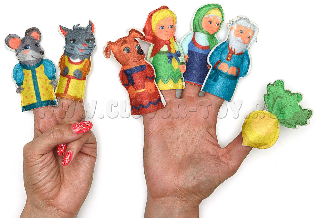 В комплект пособия входят пальчиковые куклы: репка, дедушка, бабушка, внучка, собака Жучка, кошка и мышка (7 шт.).