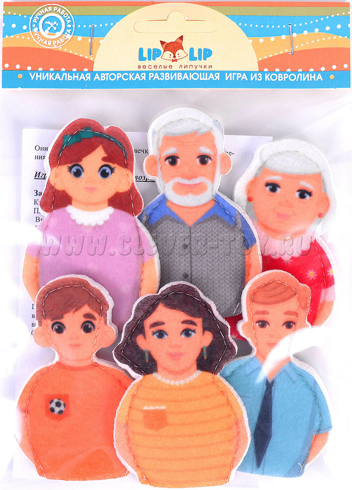 Набор пальчикового театра состоит из: 6 фигурок семьи (размер: 8,5 см) мама, папа, бабушка, дедушка, брат, сестра и инструкции с описанием игр.