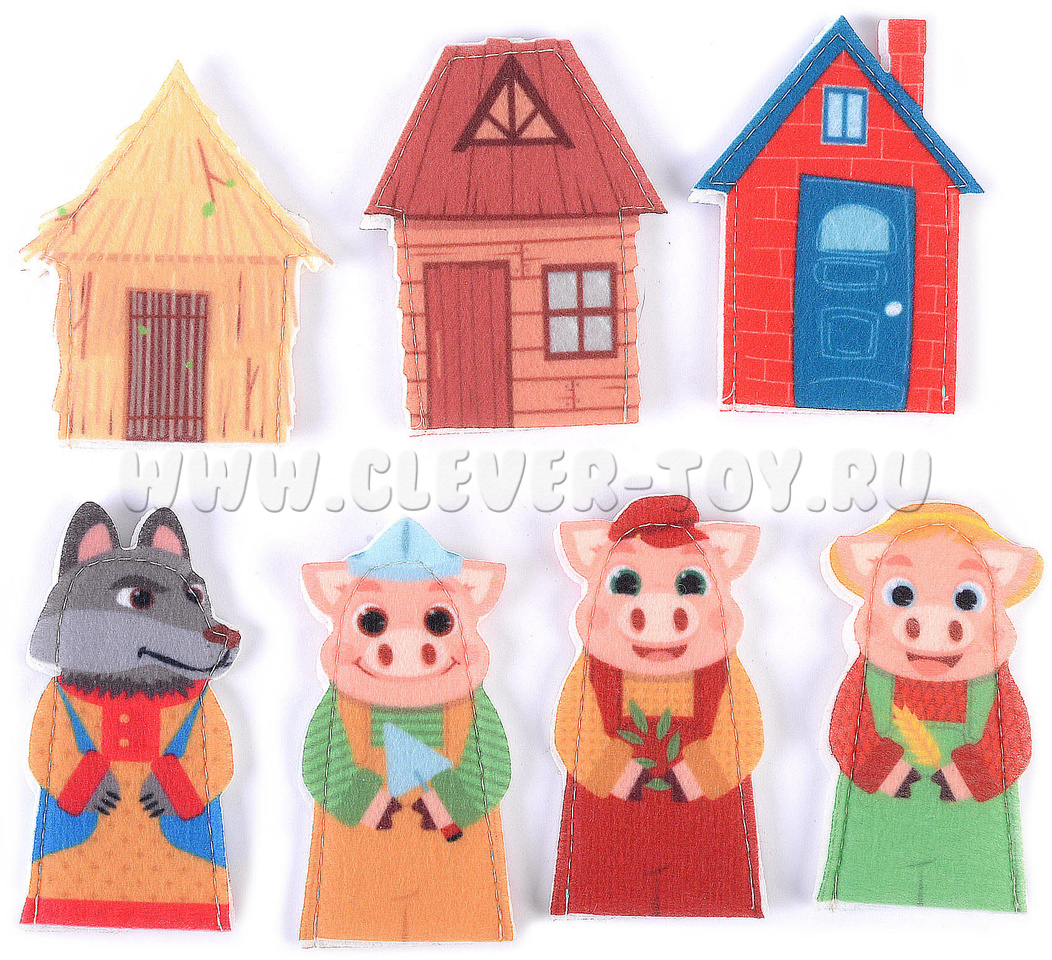 Пальчиковый театр Три поросенка (7 элементов, фетр)