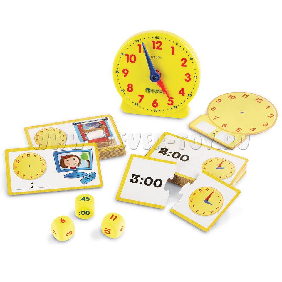 • Определение времени. Бросайте кубики и устанавливайте время на часах, затем дублируйте его на циферблате. Соединяйте пазлы, соотнося аналоговое и цифровое время.