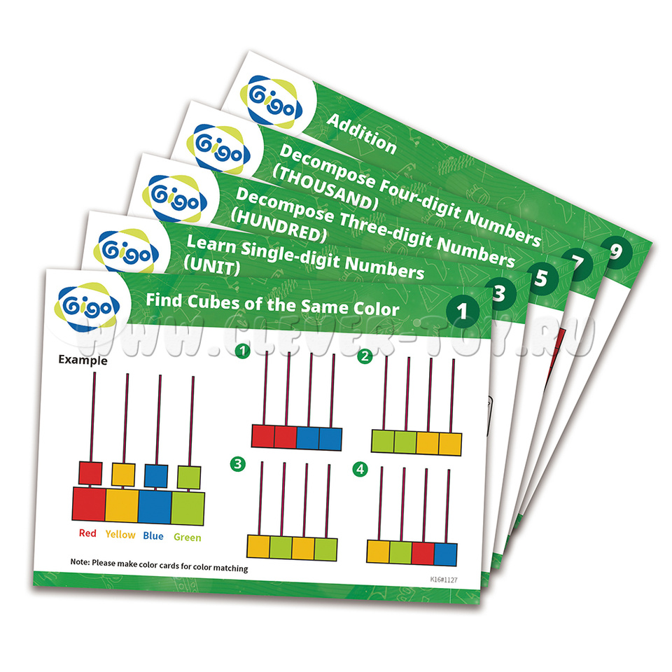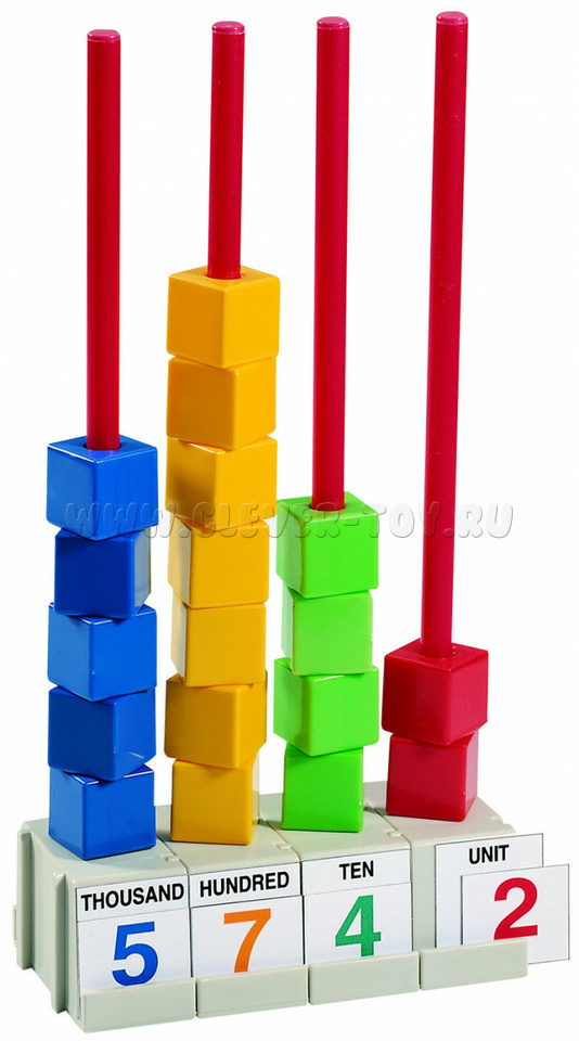 Дети используют кубики и стержни, развивая терпение, концентрацию и зрительно-моторную координацию. Нанизывание кубиков на стержни помогает им освоить базовые математические операции, такие как подсчет, сложение и вычитание. Карточки с задачами добавляют элемент развлечения и обучения, позволяя детям работать с числовыми разрядами — единицами, десятками, сотнями и даже тысячами.